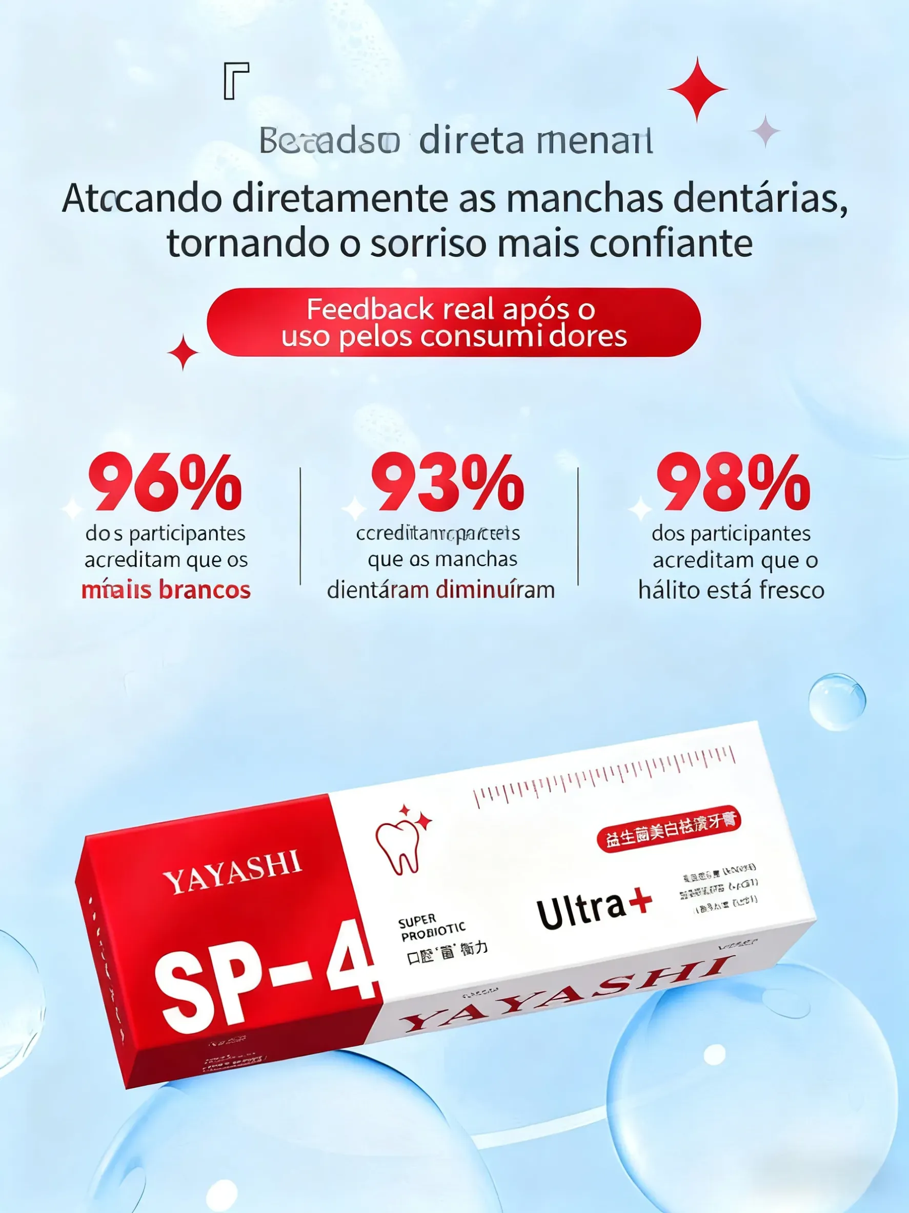 Creme Dental Probiótico YAYASHI SP-4, Clareia e Remove Manchas Amarelas, Fresca o Hálito, Cuida das Gengivas e Fortalece os Dentes, Clareia em Um Escovo | Entrega em Casa e Pagamento na Entrega (COD) em Luanda