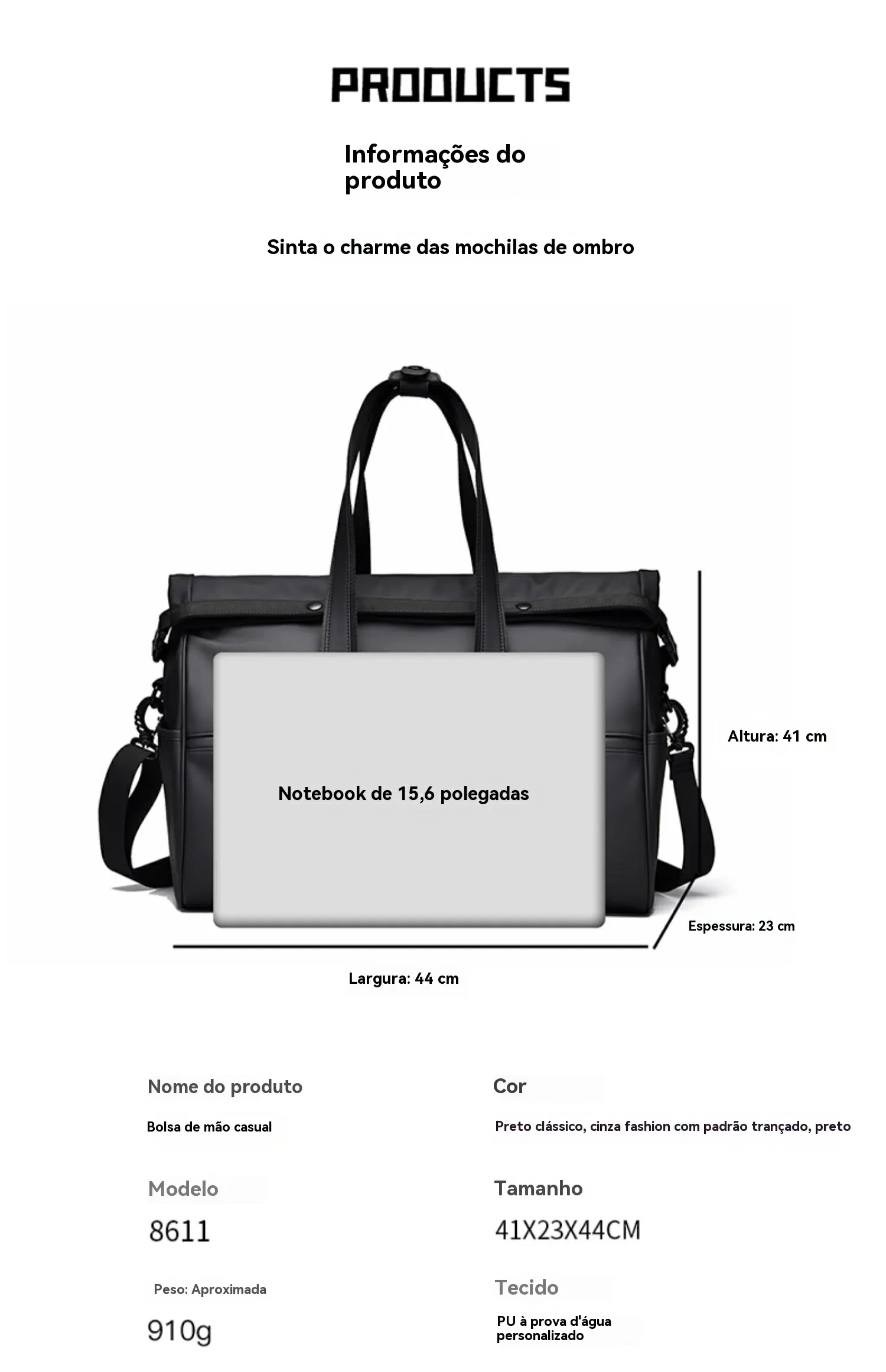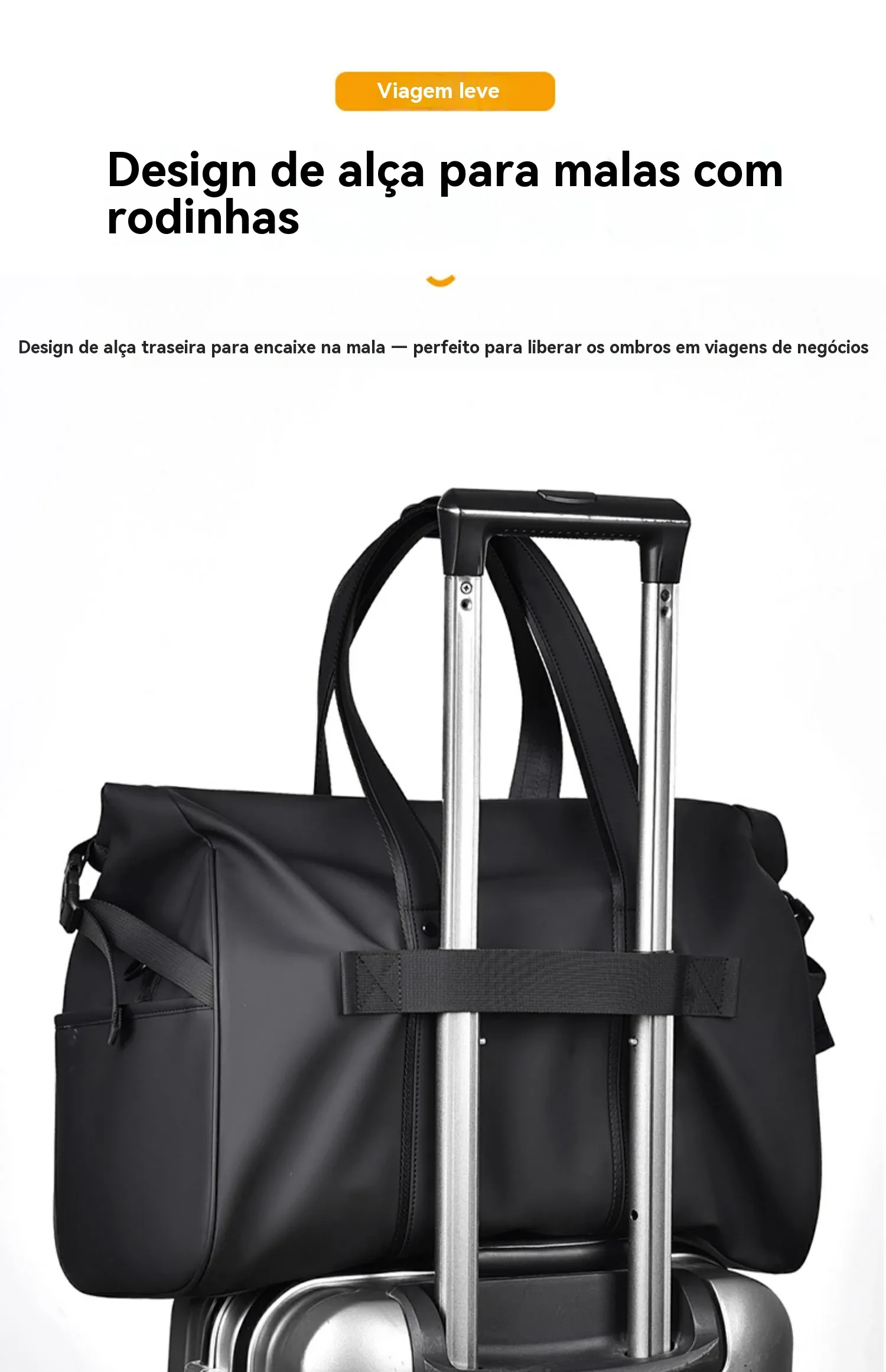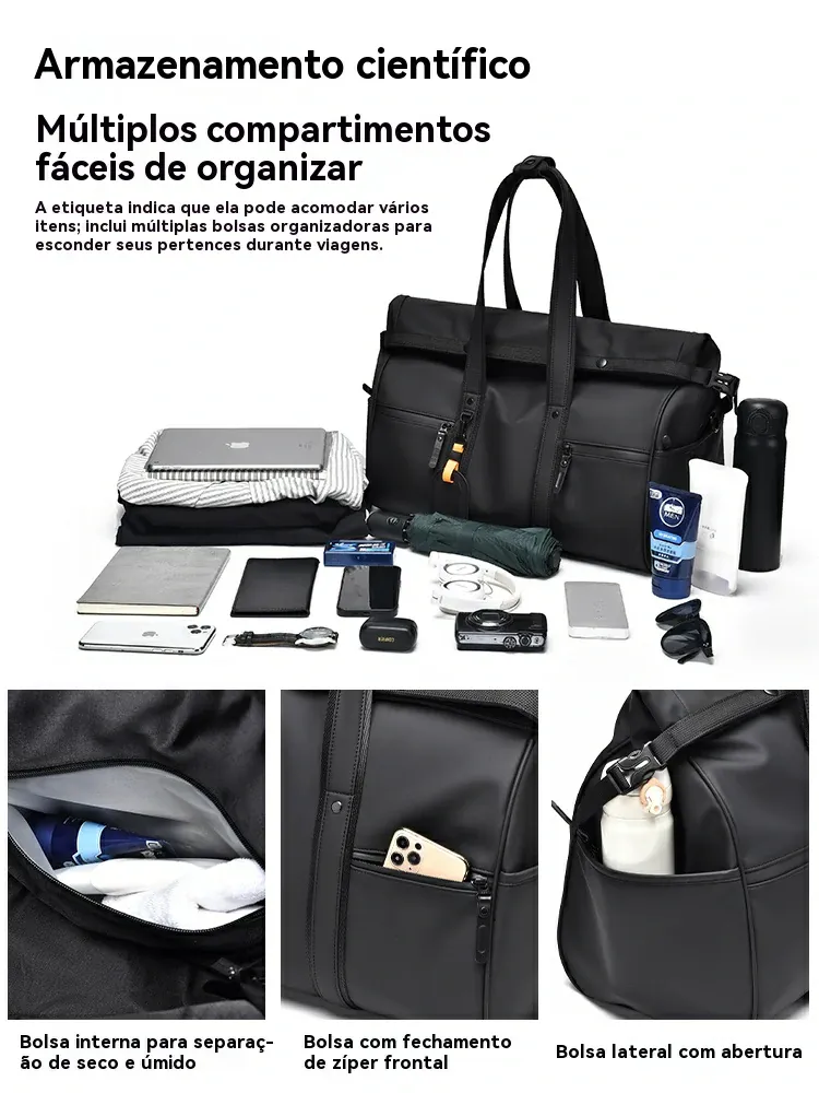 Design moderno: preto elegante, estilo executivo minimalista, perfeito para trabalho, viagenscurtas e finais de semana