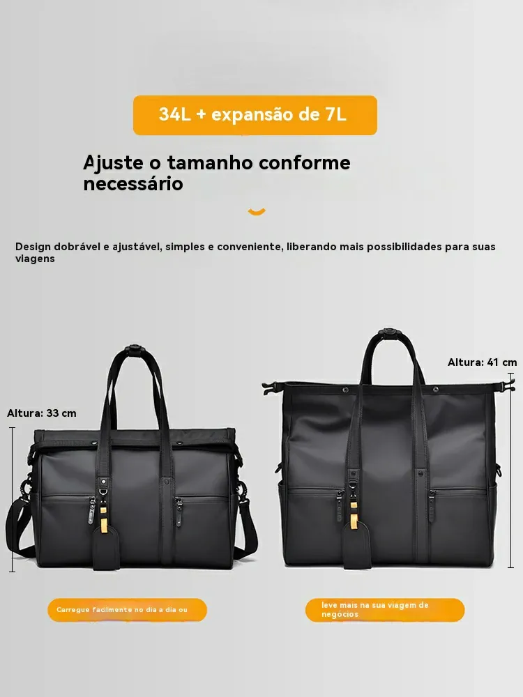 Capacidade flexível: 34L base + 7L expansível, ideal para diferentes necessidades de viagem