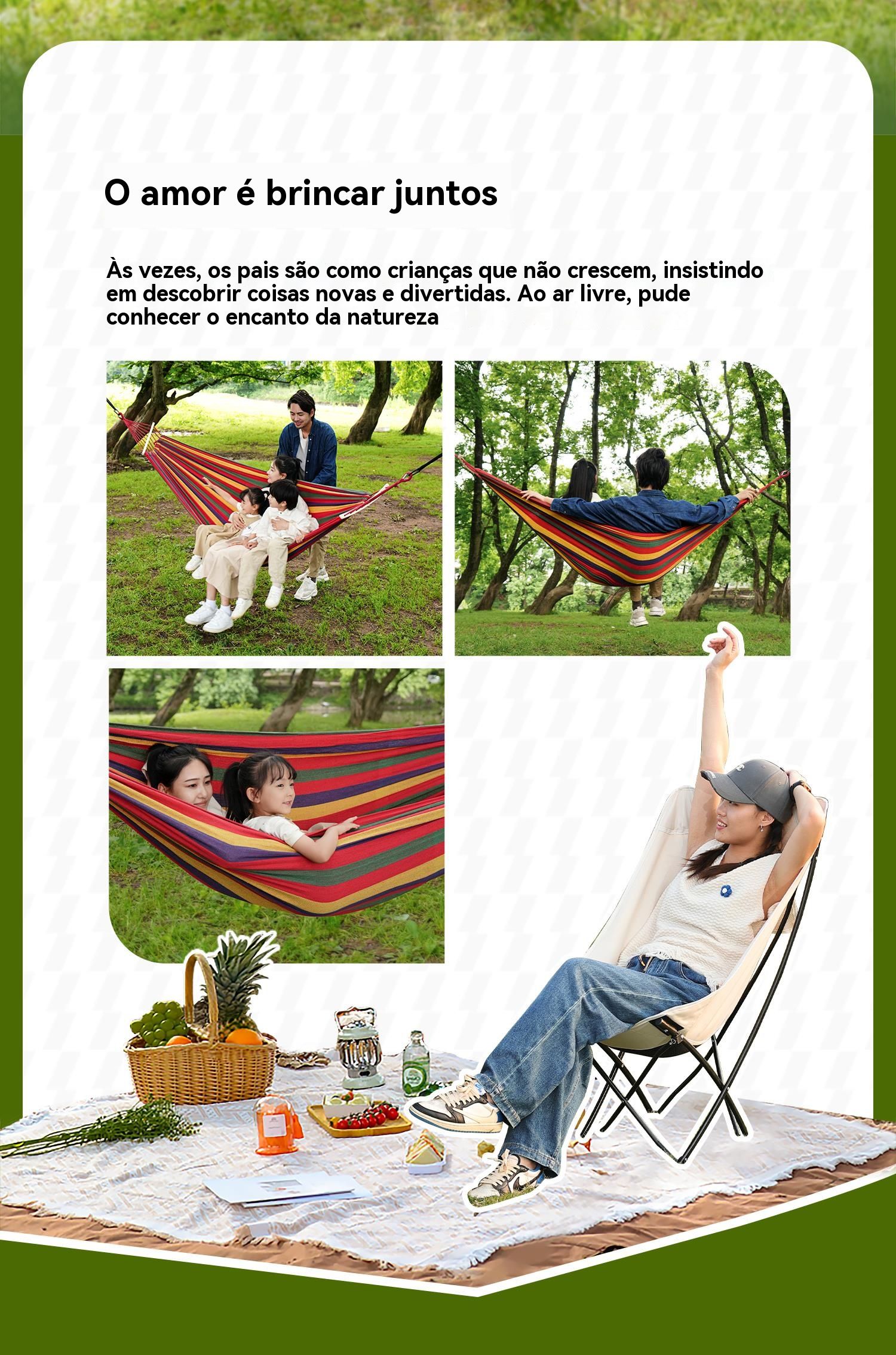 Funciona como rede e como balanço! Perfeita para parques, quintal, jardim, praia ou camping.