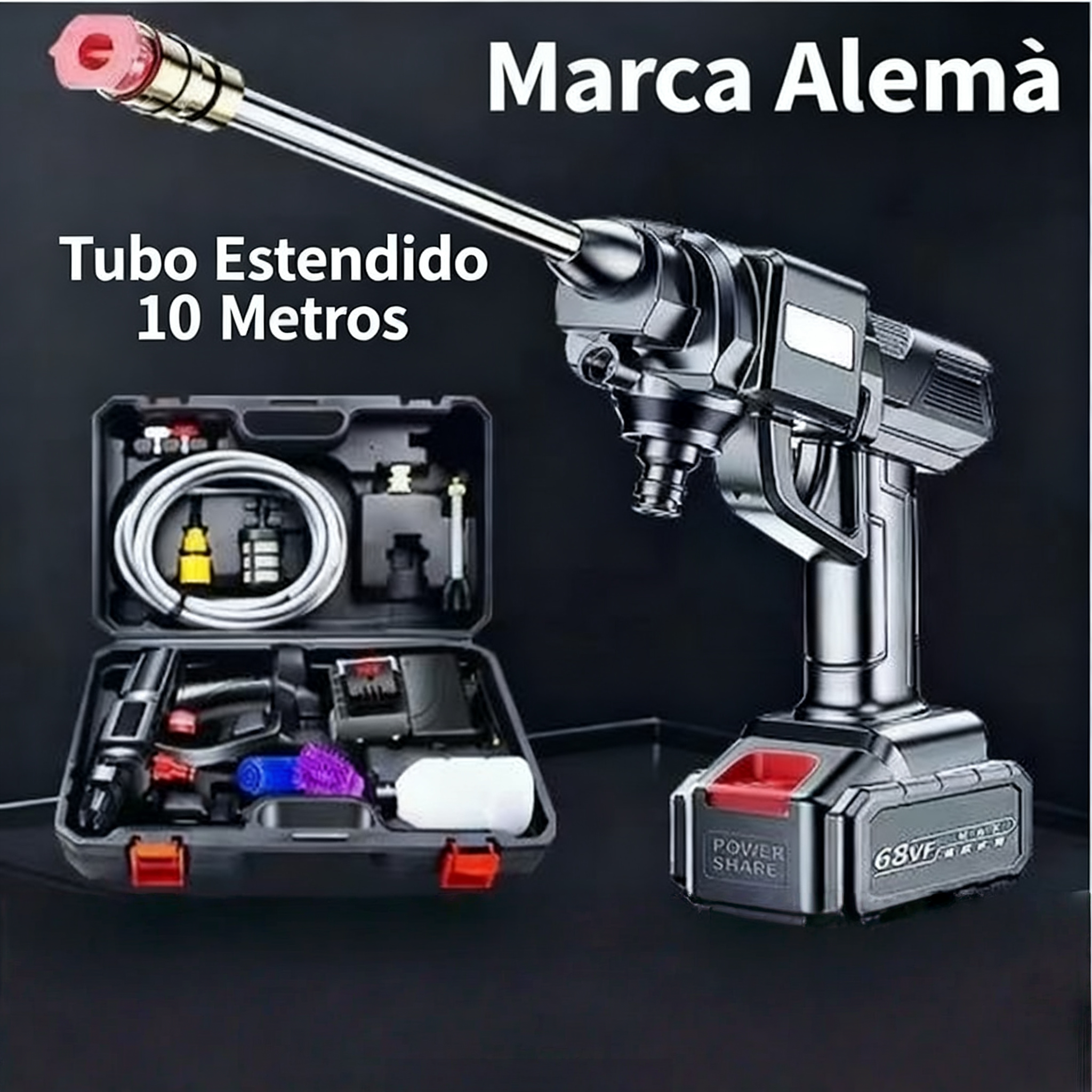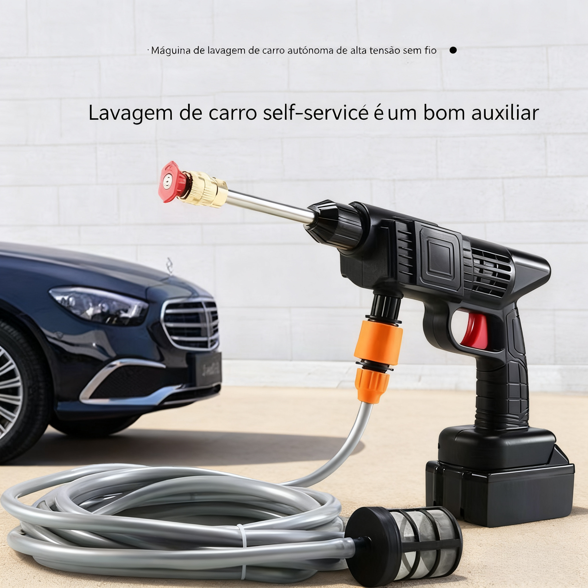 Lava-Carro a Alta Pressão Sem Fio, Qualidade Alemã, Tubo Estendido 10 Metros, Lavagem Eficiente e Econômica, Uso para Carro e Casa | Entrega em Casa e Pagamento na Entrega (COD) em Luanda