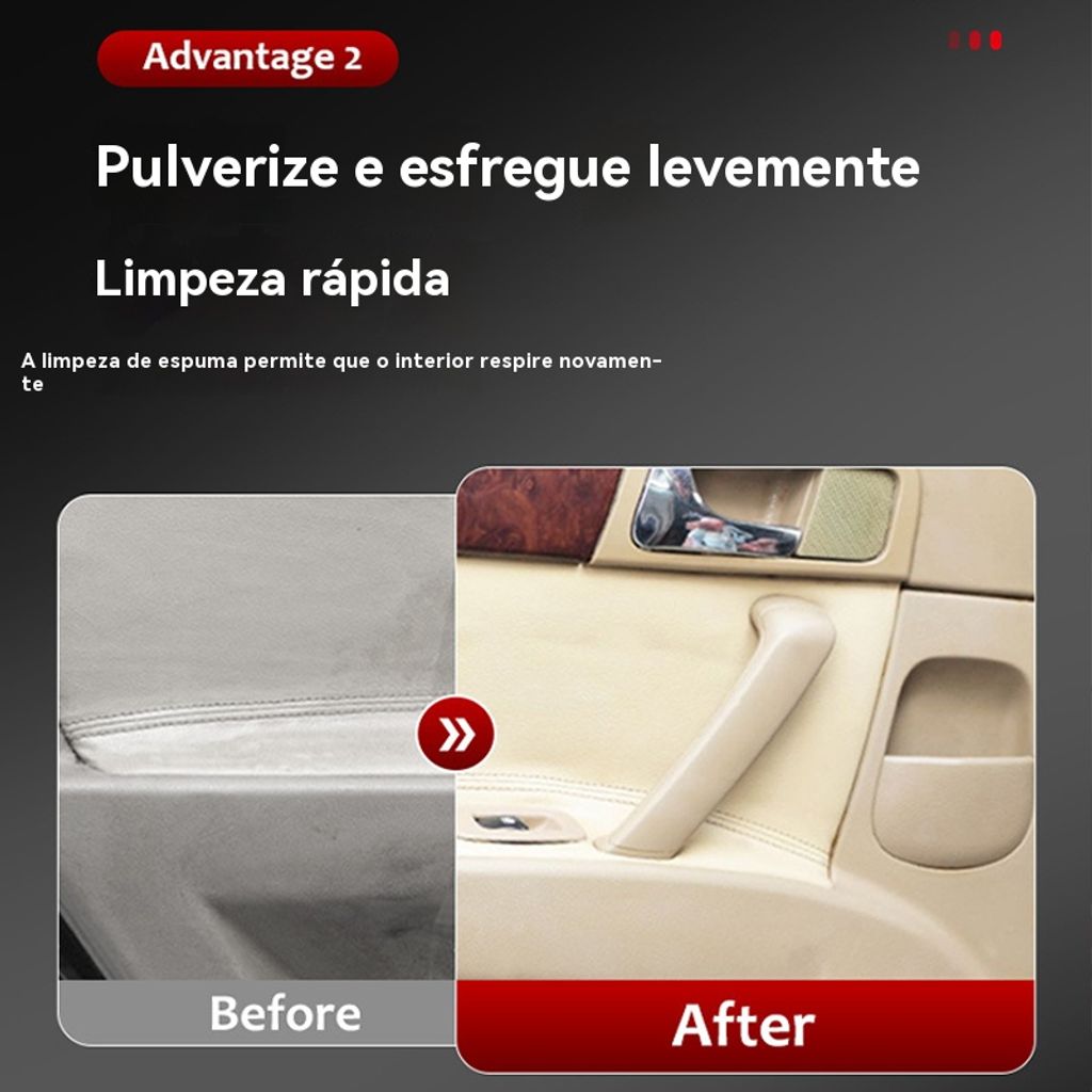 ✨ Fórmula suave: tecnologia alemã, protege couro/plástico do carro, não irrita as mãos