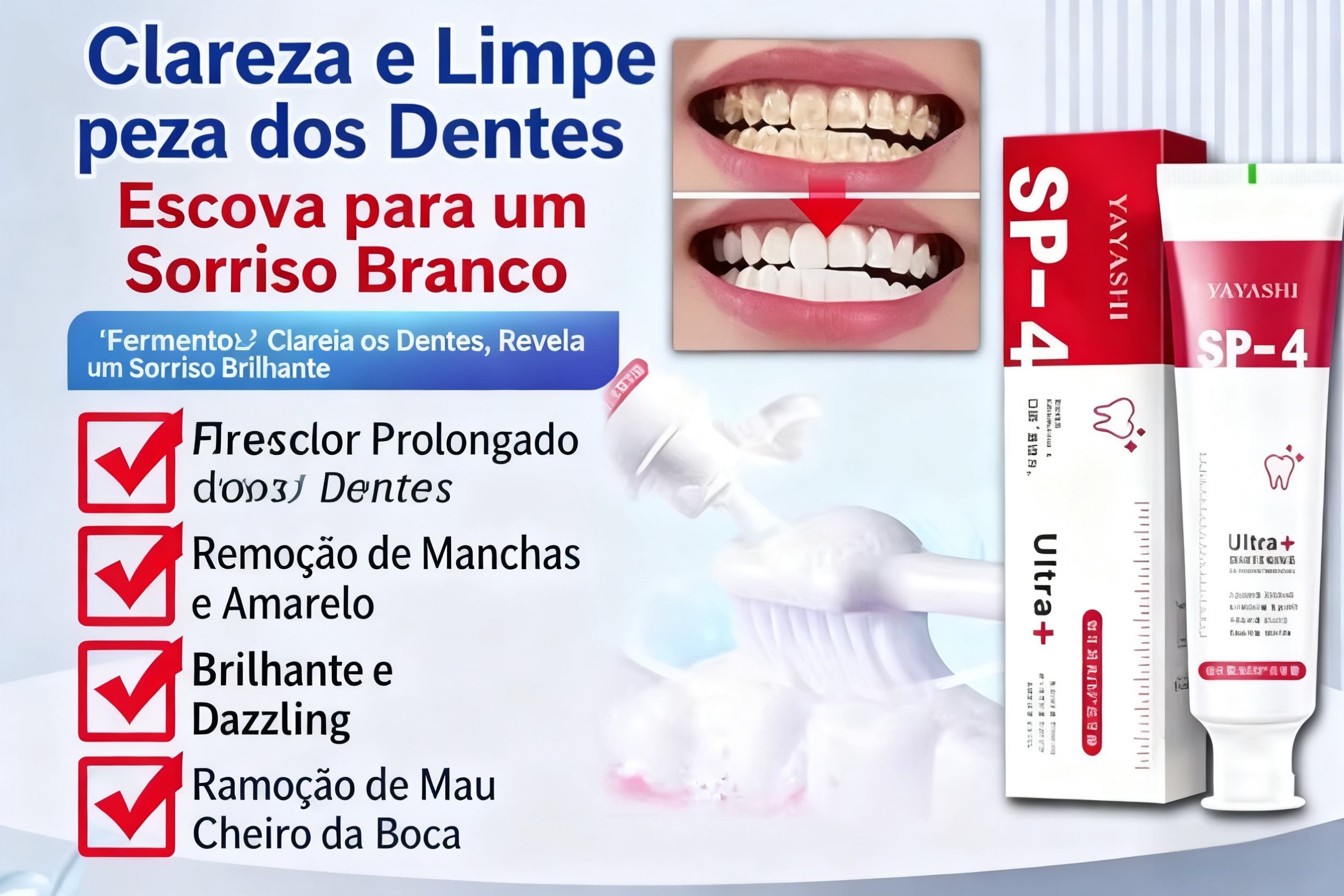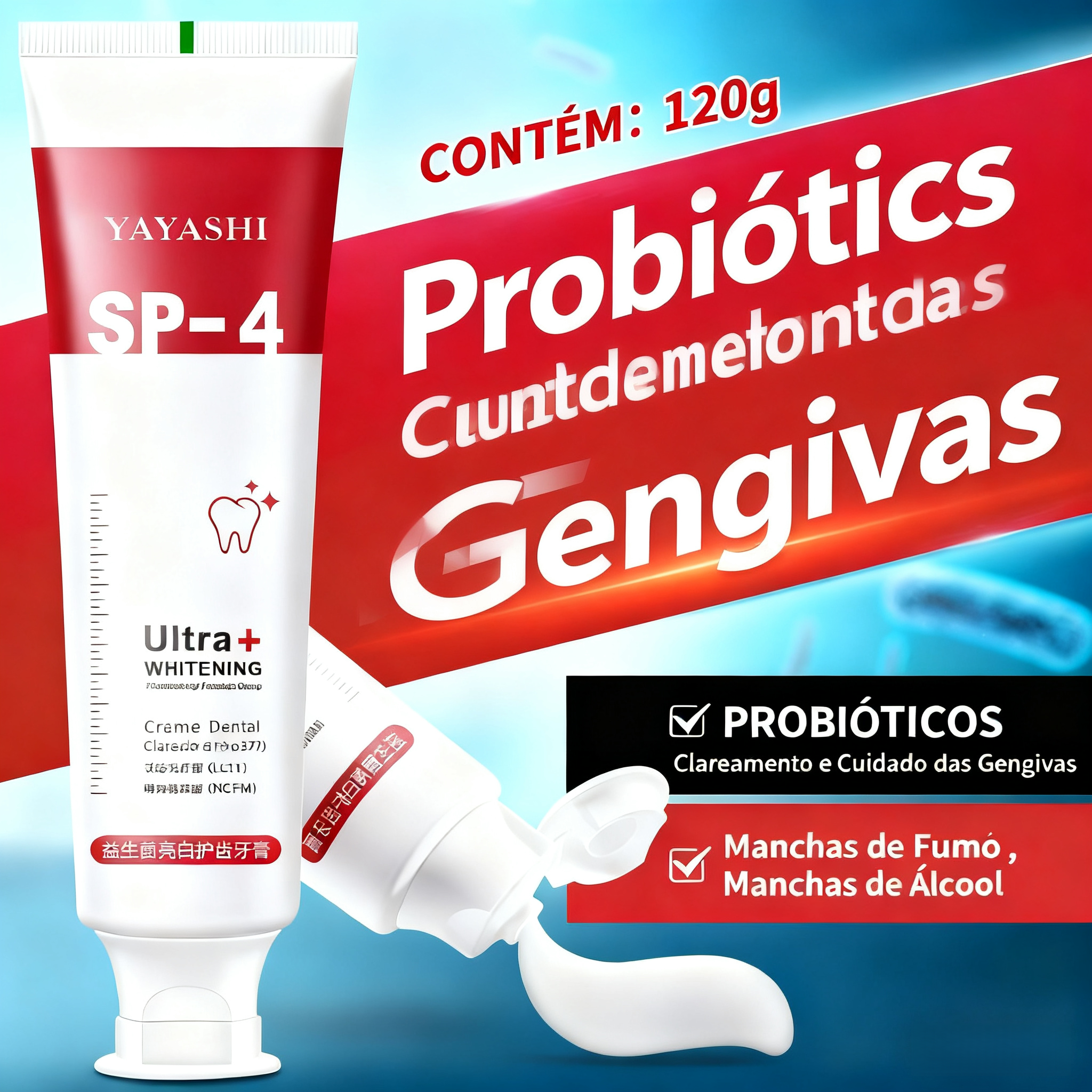 Creme Dental Probiótico YAYASHI SP-4, Clareia e Remove Manchas Amarelas, Fresca o Hálito, Cuida das Gengivas e Fortalece os Dentes, Clareia em Um Escovo | Entrega em Casa e Pagamento na Entrega (COD) em Luanda
